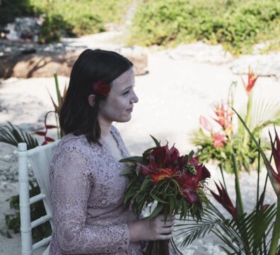 Die Hochzeitszeremonie fand in einer Bucht in Nusa Dua statt, die das Brautpaar und ihre Gäste nur für sich alleine hatten. Für die Dekoration haben sich Mel & Patrick für den tropisch-balinesischen Stil entschieden und wir können total nachvollziehen warum! Die farbenprächtigen, tropischen Blumen gepaart mit dem hellen Sand und balinesischen Akzenten sind eine Augenweide.