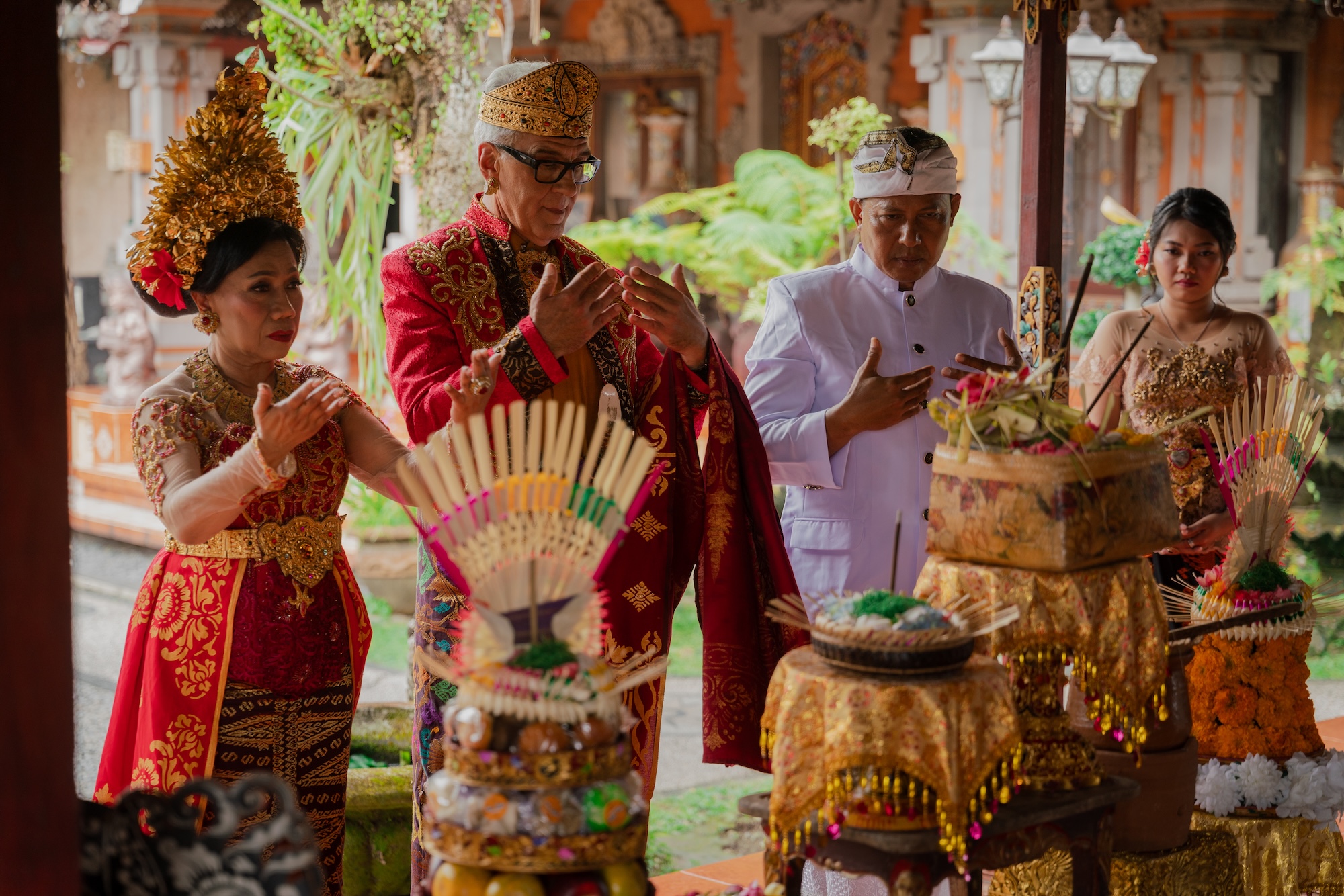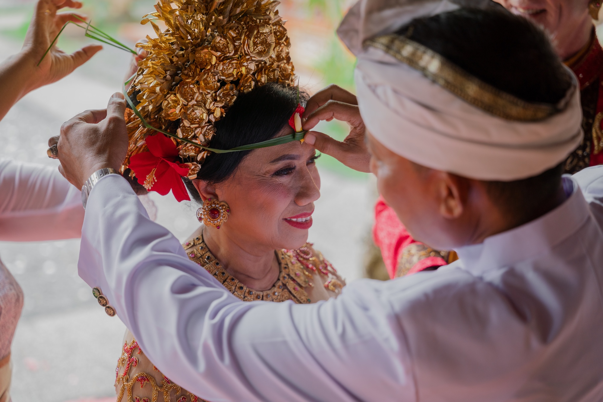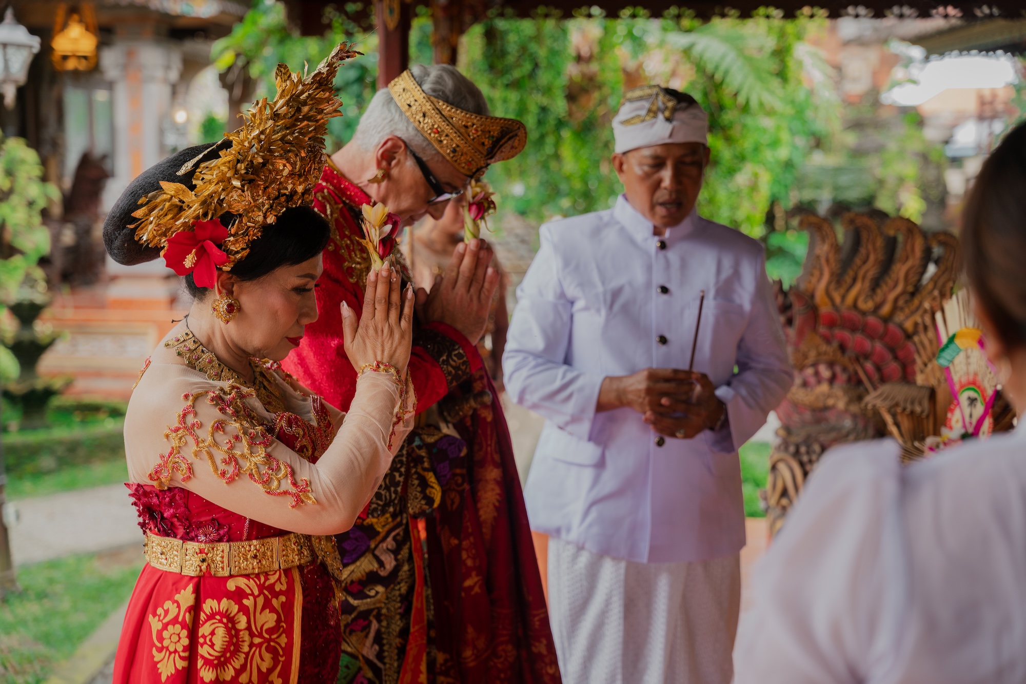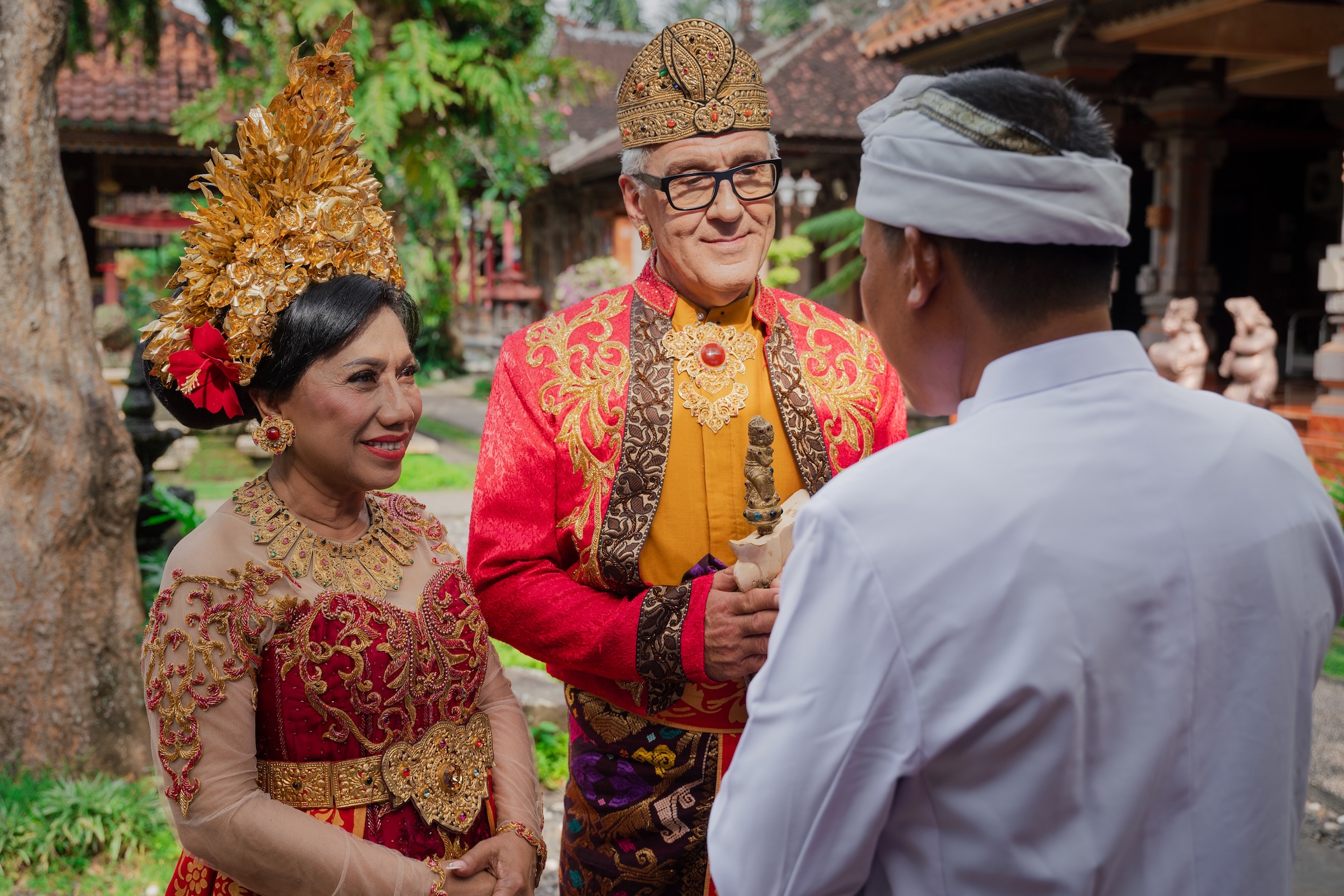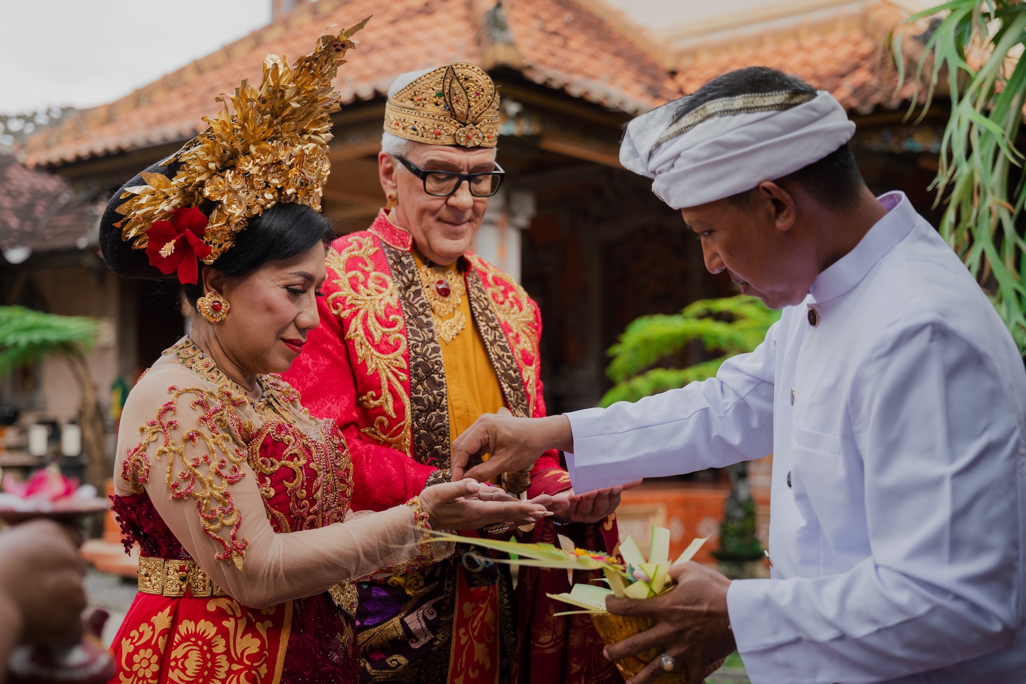 Yuni und Herbert feierten ihre Liebe in einer traditionellen balinesischen Puri-Anlage, umgeben von kunstvollen Tempeldetails, farbenprächtigen Blumenarrangements und heiligen Ritualen. In authentischer balinesischer Hochzeitskleidung erlebten sie eine tief spirituelle Segnung, die Kultur und Romantik auf wunderschöne Weise vereinte. Ein unvergesslicher Moment voller Tradition, Emotionen und Liebe.